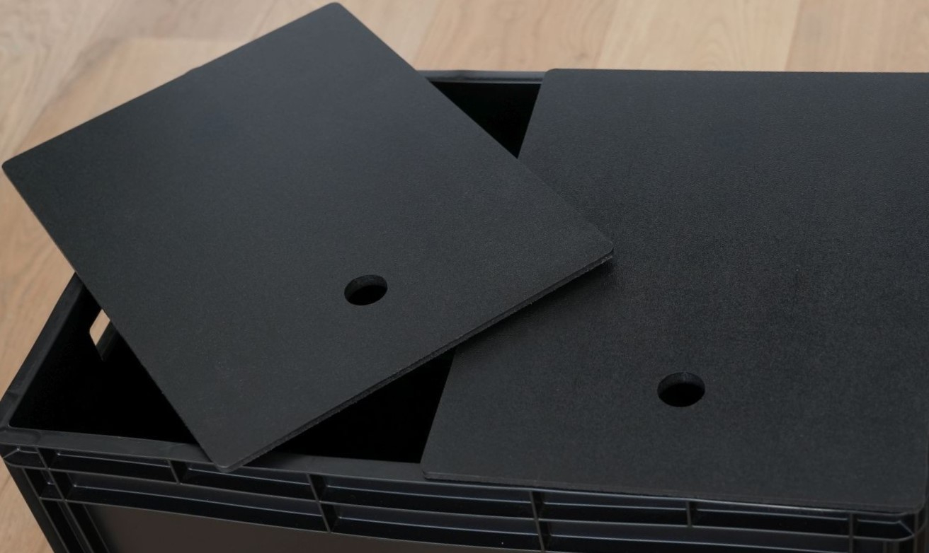 Specially made lids are also available for the transport boxes, with which the contents of the box can be stowed neatly and cleanly. Optionally, these lids are also available with an inlet for a sink. All you need is a stove next to it on the lid, and you will have made yourself a small kitchen. The boxes with lids can also be used outside, for example as a small table or as a bench, due to the sturdiness of the boxes. Another area of application: Many people use the rear shower at the back of the bus. But what happens when you shower in nature? The ground gets quite muddy. Here, the lids are the ideal shower mat. Just rinse off afterward!